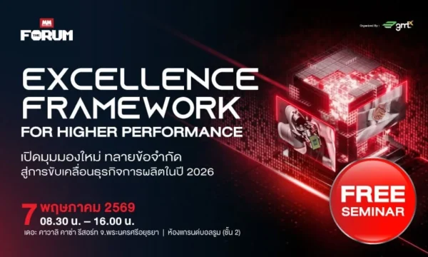 Executive Seminar สำหรับผู้บริหาร เปิดมุมมองใหม่ ทลายข้อจำกัด สู่การขับเคลื่อนธุรกิจการผลิตในปี 2026 วันที่ 7 พฤษภาคม 2569 จ.อยุธยา