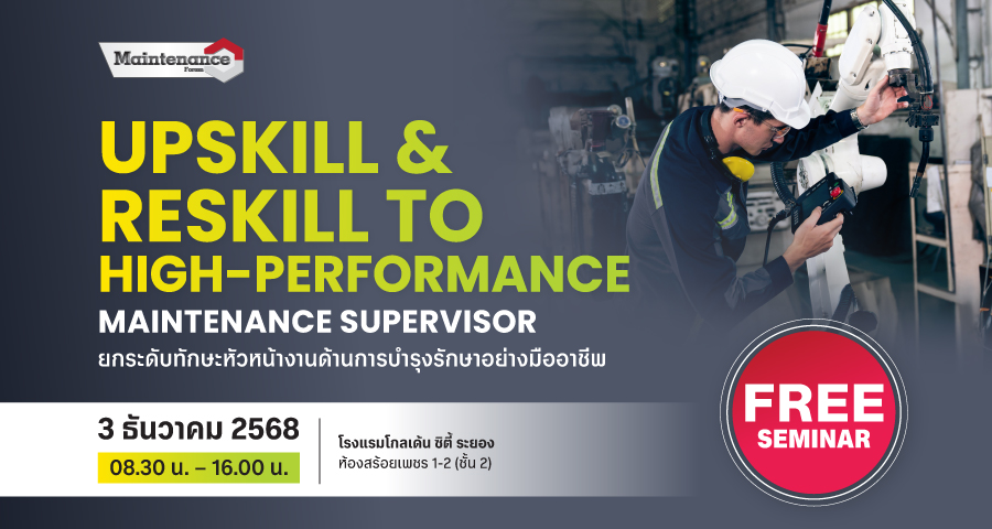สัมมนาหัวข้อ Upskill & Reskill High-Performance Maintenance Supervisor ยกระดับทักษะหัวหน้งานด้านการบำรุงรักษาอย่างมืออาชีพ วันที่ 03 ธันวาคม 2568 เวลา 8.30 – 16.00 น. ณ จ.ระยอง
