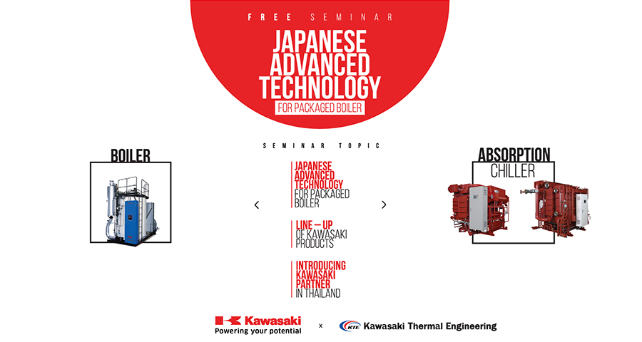 ด้วยบริษัท กรีนเวิลด์ พับลิเคชั่น จำกัด ร่วมกับ บริษัท Kawasaki Thermal Engineering จำกัด ได้จัดการสัมมนา Japanese Advanced Technology for Packaged Boiler ขึ้น เพื่อแนะนำและประชาสัมพันธ์ เทคโนโลยีขั้นสูง ของญี่ปุ่นสำหรับหม้อไอน้ำ บรรจุหีบห่อ โดยงานดังกล่าวได้รับเกียรติจาก Mr. Tamon Yagihashi ผู้บริหารระดับสูงของบริษัท Kawasaki เป็นผู้บรรยาย