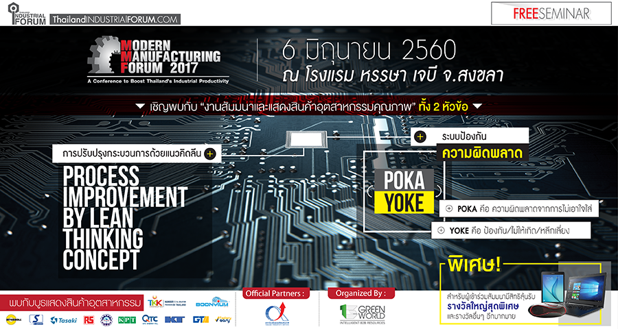 งานสัมมนาและแสดงสินค้าอุตสาหกรรม Modern Manufacturing Forum 2017 วันที่ 6 มิถุนายน 2560 เวลา 08.00 -16.30 น. ณ โรงแรม หรรษา เจบี จ.สงขลา (ฟรีสัมมนา ไม่ต้องเสียค่าใช้จ่ายในการเข้าร่วมงาน)