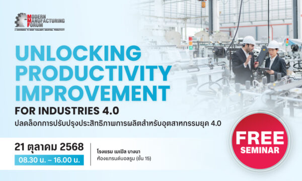 สัมมนาหัวข้อ UNLOCKING PRODUCTIVITY IMPROVEMENT วันที่ 21 ตุลาคม 2568 เวลา 8.30 – 16.00 น. โรงแรม เมเปิ้ล บางนา จ.กรุงเทพฯ