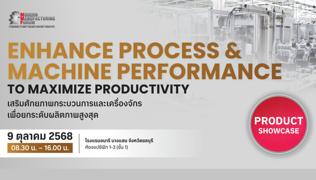 สัมมนาหัวข้อ ENHANCE PROCESS & MACHINE PERFORMANCE TO MAXIMIZE PRODUCTIVITY เสริมศักยภาพกระบวนการและเครื่องจักร เพื่อยกระดับผลิตภาพสูงสุด วันที่ 9 ตุลาคม 2568 เวลา 8.30 – 16.00 น. ณ โรงแรมอมารี บางแสน จ.ชลบุรี