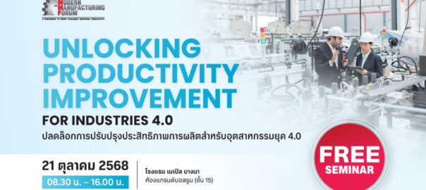 สัมมนาอุตสาหกรรม ฟรี Modern Manufacturing Forum วันที่ 24 ก.ค. 68 จ.ชลบุรี หัวข้อ Unlocking Productivity Improvement For Industries 4.0